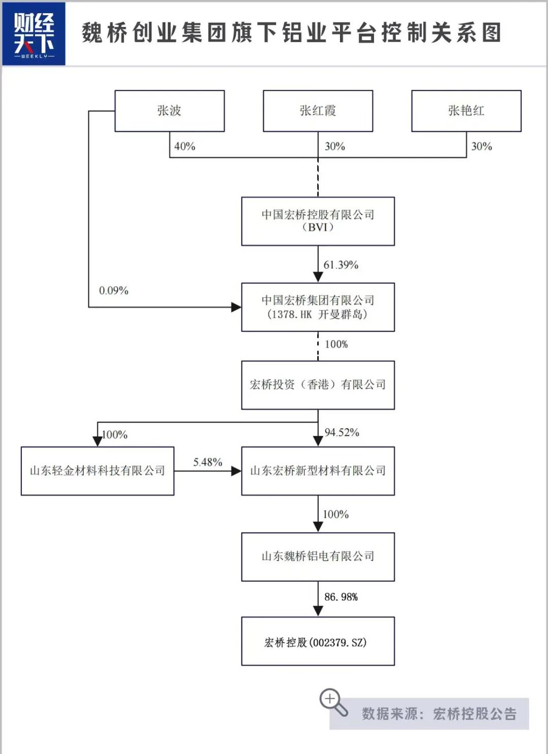 交易完成后,魏桥集团的铝业资产形成了相对清晰的架构:A股宏创控股承载国内生产与经营资产;港股中国宏桥则拥有集团控股权及海外矿产资源。